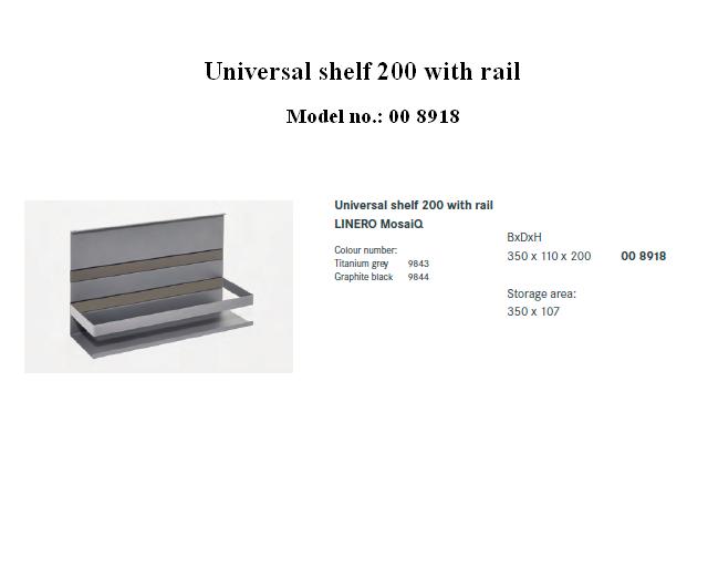 Universal shelf 200 with rail Model no.: 00 8918 Size: 350B x 110D x 200H * Available in 300H- Model no.: 00 8919 * Delivery fee is included.